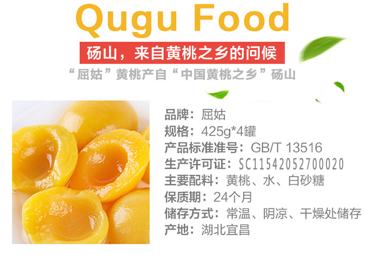 【宜昌馆】新鲜水果罐头砀山糖水黄桃罐头425g*4罐整箱